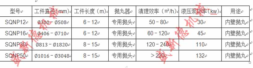 三、鋼管內(nèi)拋頭技術(shù)參數(shù):