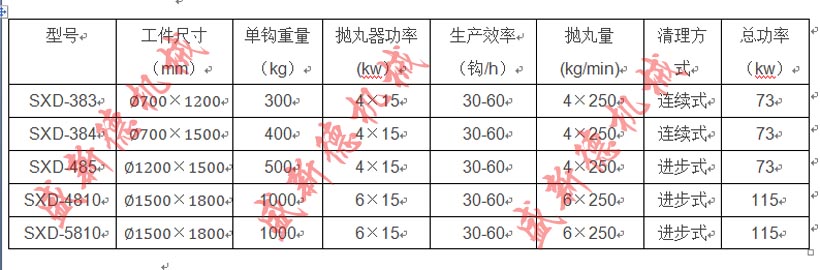 三、  懸鏈通過式拋丸機技術(shù)參數(shù)