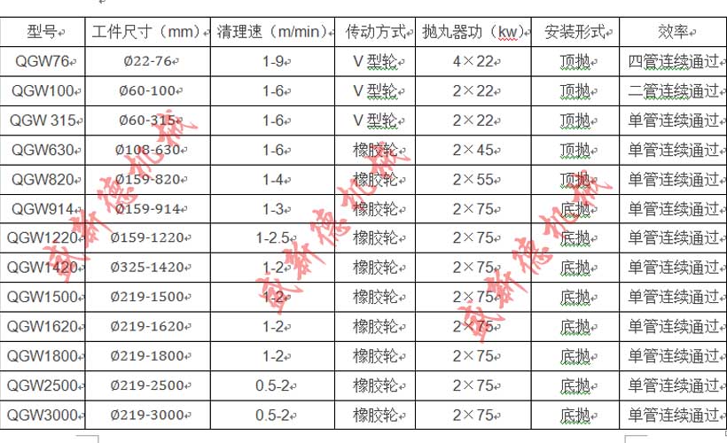 三、鋼管外壁拋丸機(jī)技術(shù)參數(shù)